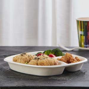 | Description | 9inch Wholesale Disposable Biodegradable Sugarcane Bagasse Pulp Molding Deep 3 Compartment Paper Plate |