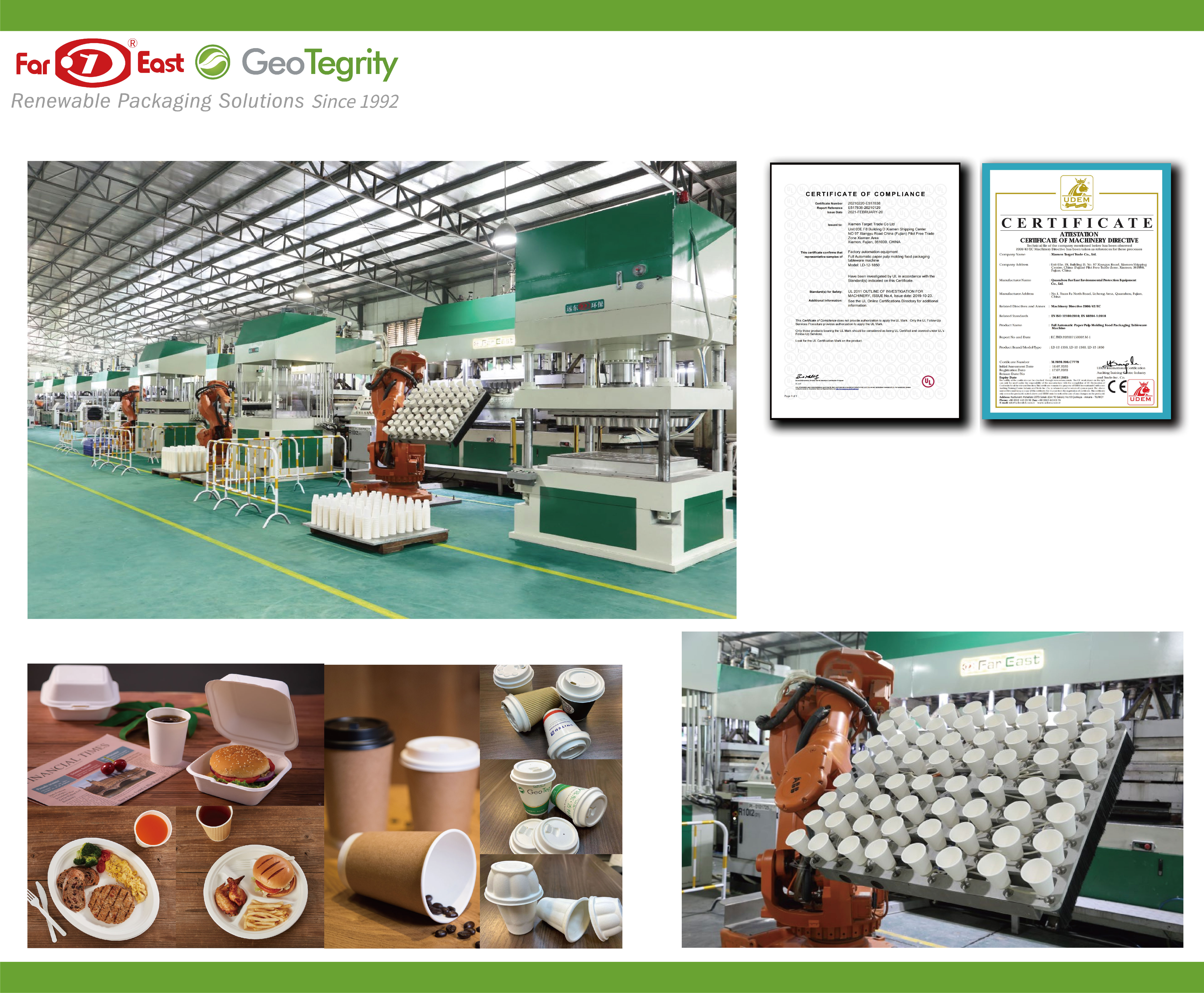 Far East is the first manufacturer of plant fiber molded tableware machinery in China since 1992. With 30-year experience in plant pulp molded tableware equipment R&D and manufacturing, Far East is the premier in this field.
